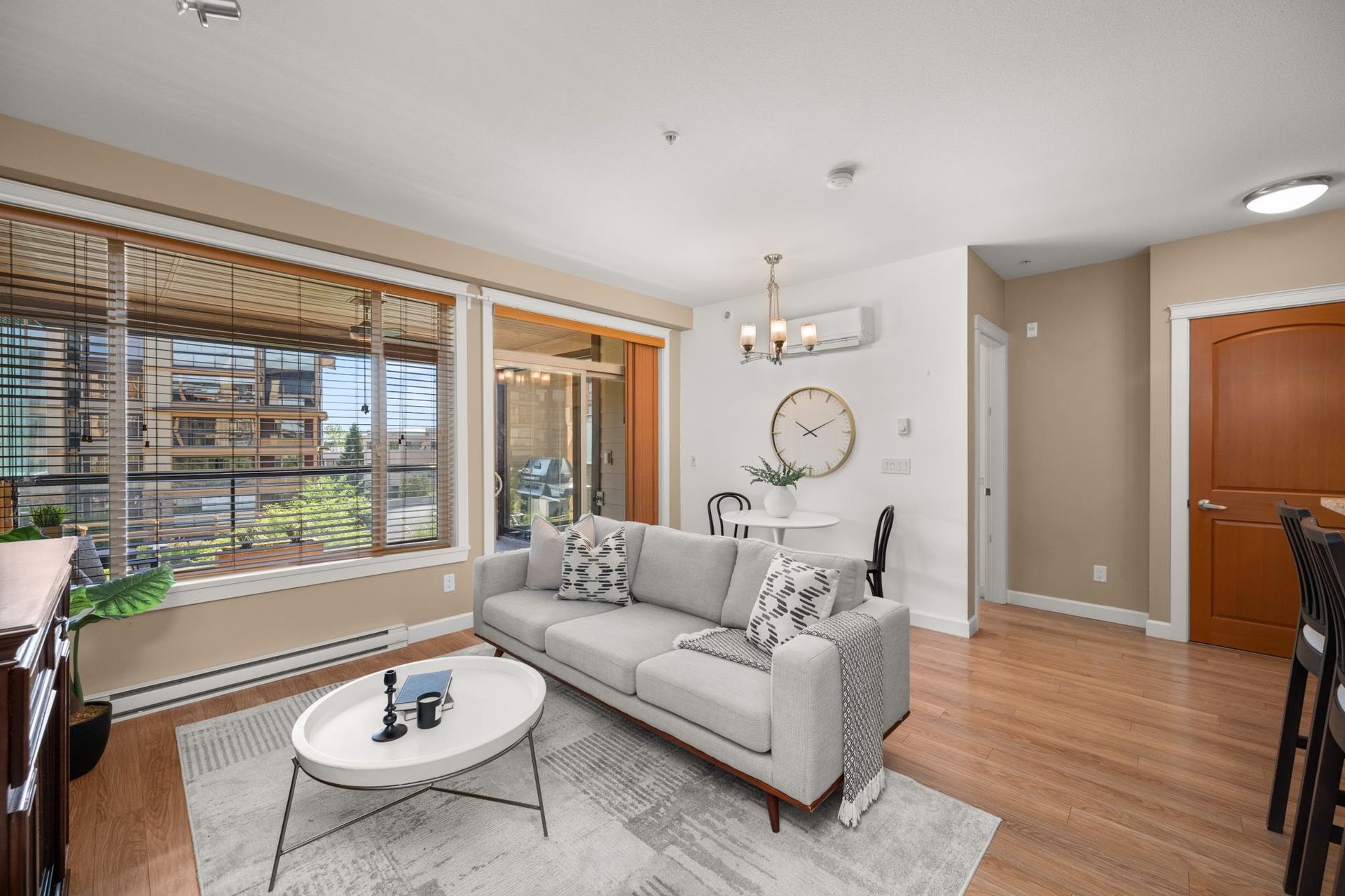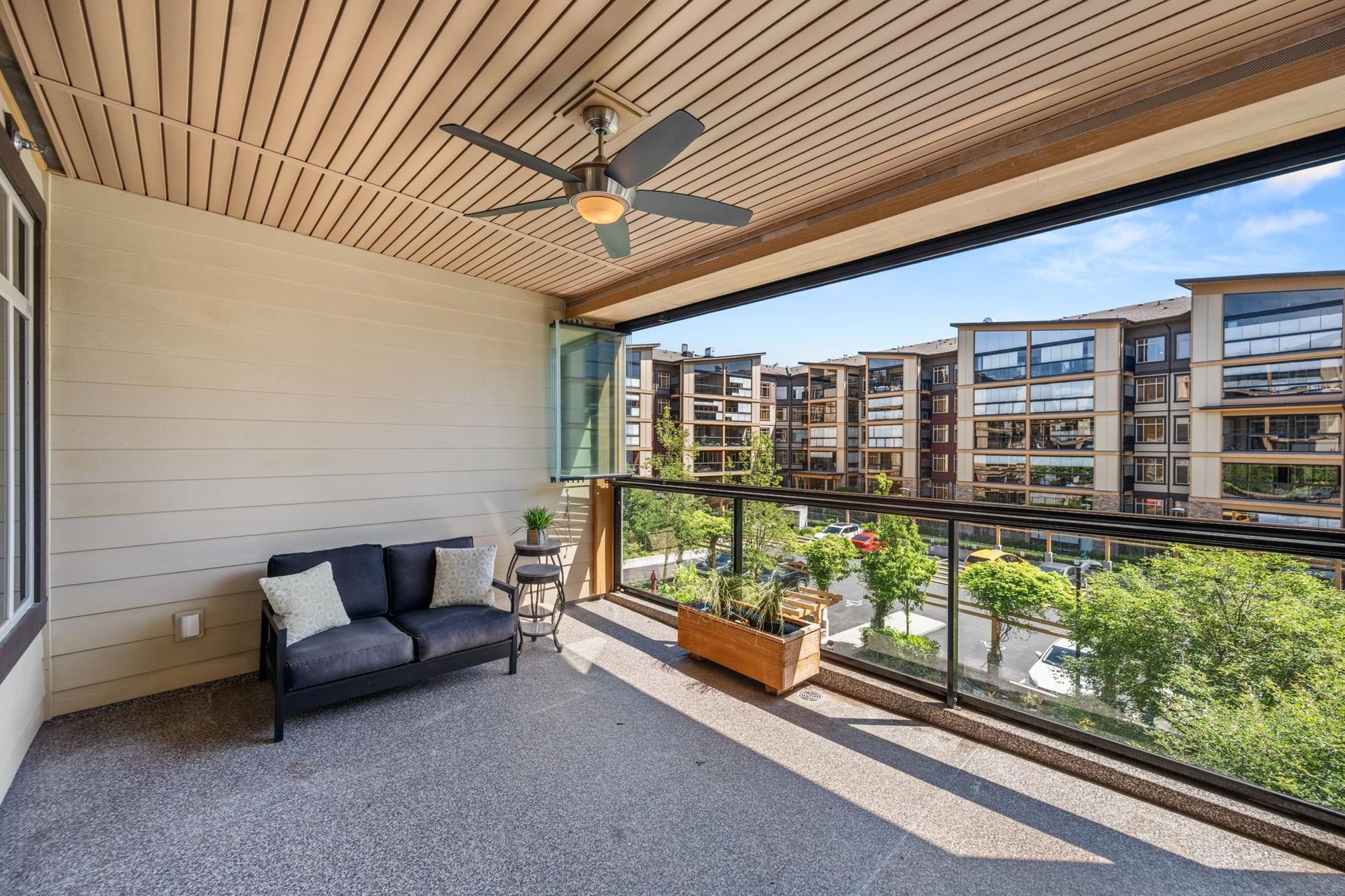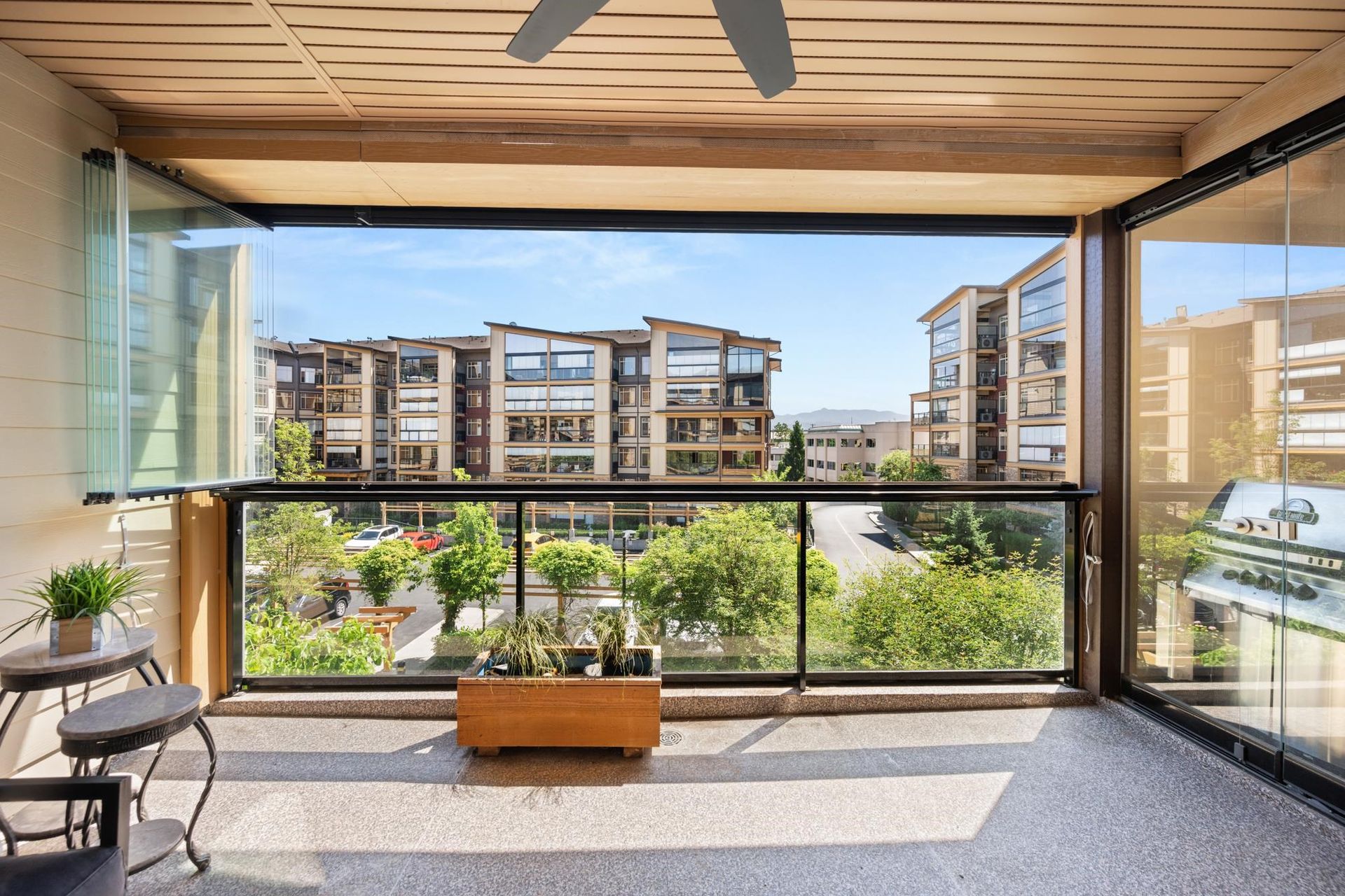 Welcome to LA GALLERIA—Abbotsford’s premier luxury condos! This stunning 1 Bed + Den home offers nearly 750 sqft of living space, plus a 219 sqft indoor/outdoor solarium with a gas BBQ hookup—perfect for year-round entertaining. The spacious den is ideal as a 2nd bedroom or home office. Enjoy a gourmet kitchen with soft-close hardwood cabinets, granite counters, stainless steel appliances, gas range, and pot filler. Spa-inspired ensuite with heated tile floo…rs, fog-free mirror, and built-in medicine cabinet. Features include A/C, custom closet organizers, built in safe, 9 ft ceilings, 7 ft doors, TWO parking stalls, and a "mini garage" oversized storage at your parking. Book your showing today!