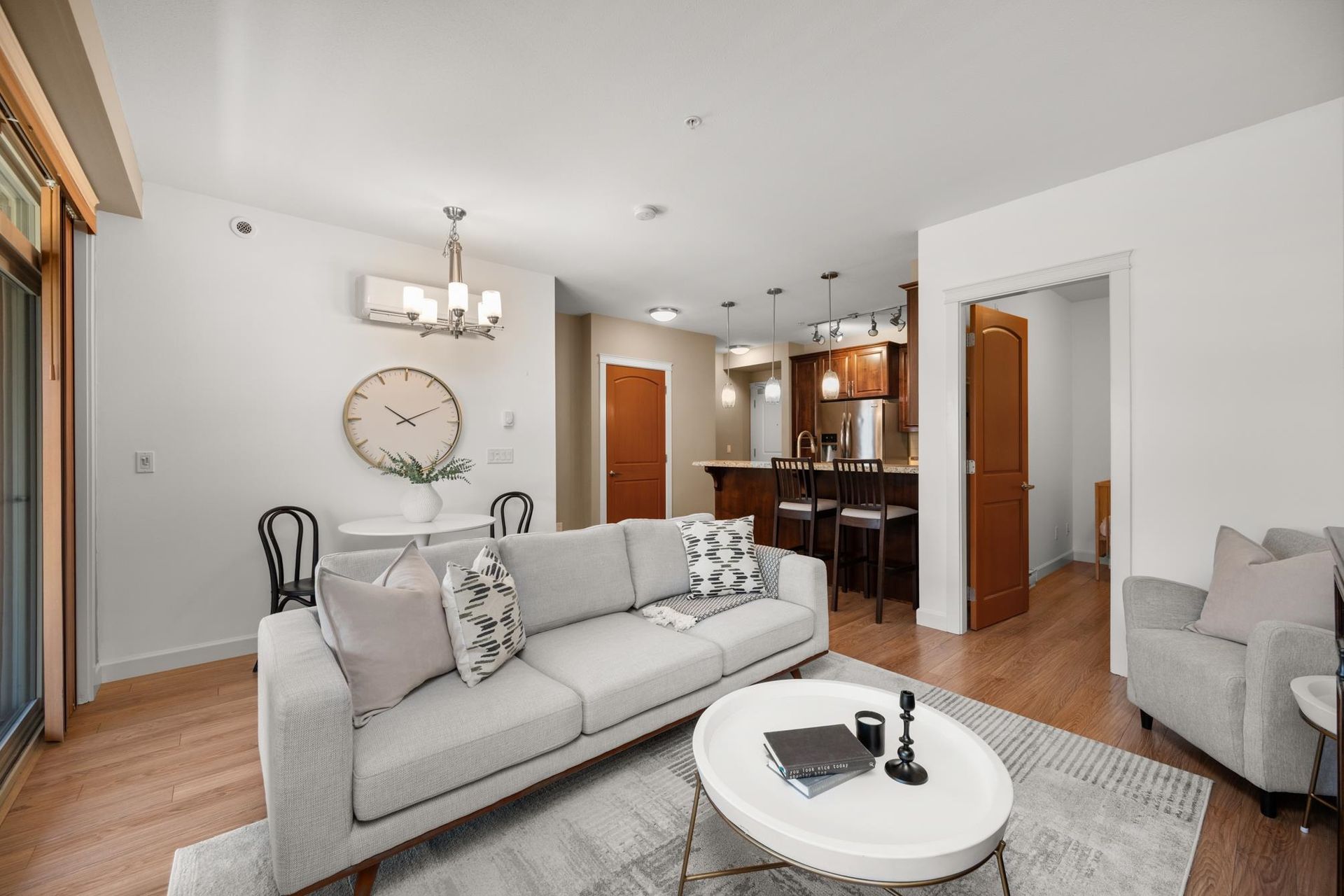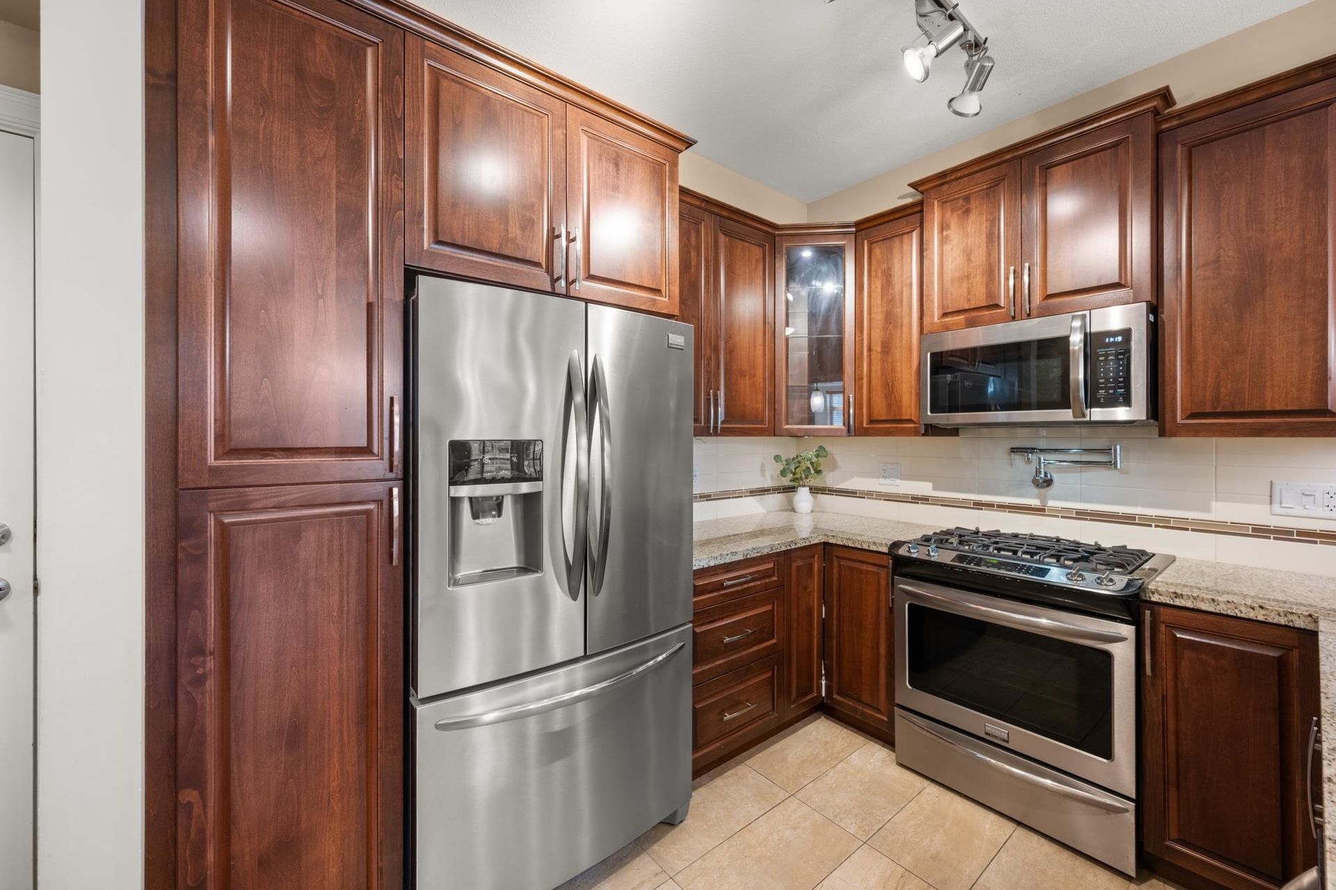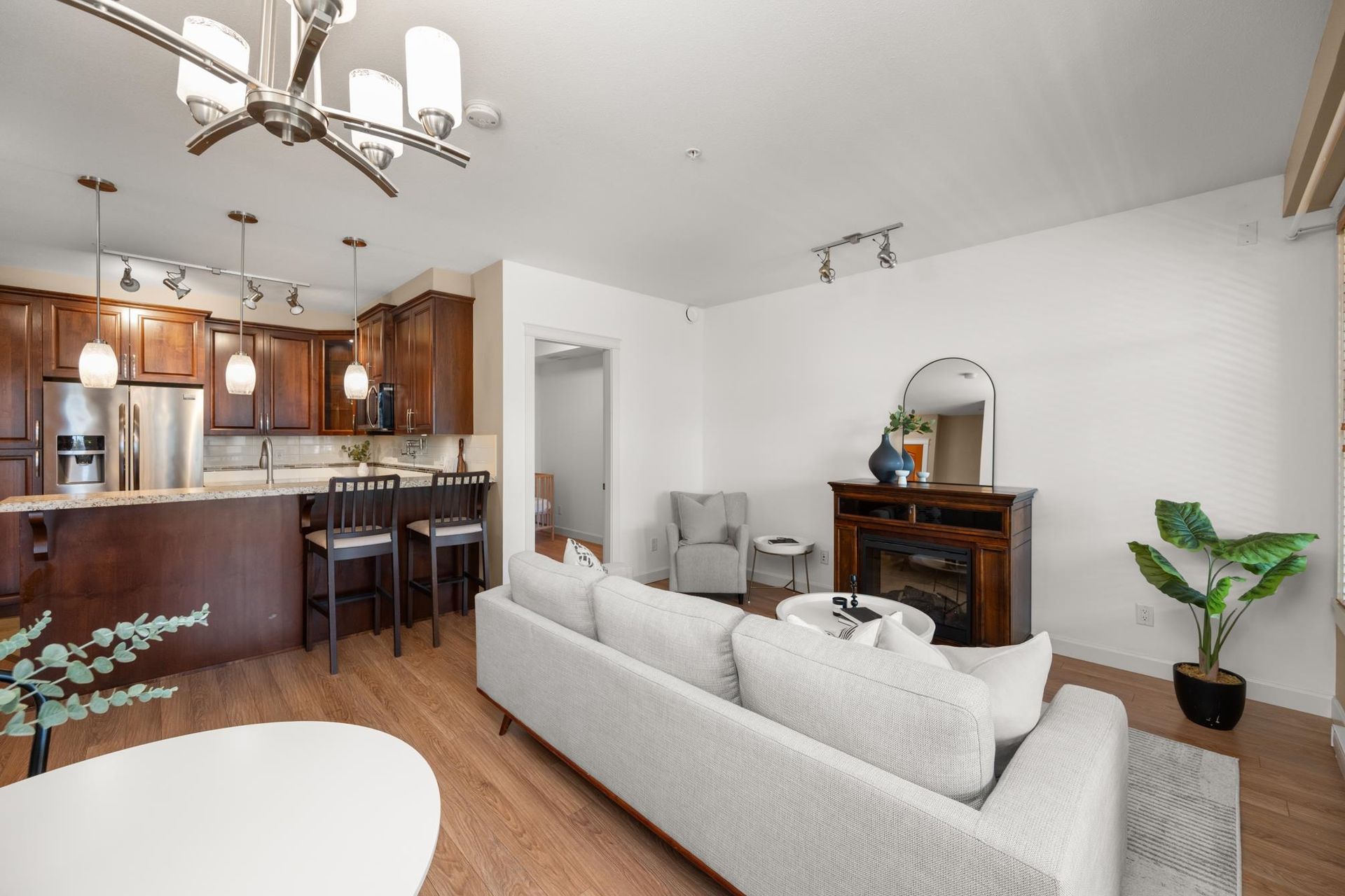 Welcome to LA GALLERIA—Abbotsford’s premier luxury condos! This stunning 1 Bed + Den home offers nearly 750 sqft of living space, plus a 219 sqft indoor/outdoor solarium with a gas BBQ hookup—perfect for year-round entertaining. The spacious den is ideal as a 2nd bedroom or home office. Enjoy a gourmet kitchen with soft-close hardwood cabinets, granite counters, stainless steel appliances, gas range, and pot filler. Spa-inspired ensuite with heated tile floo…rs, fog-free mirror, and built-in medicine cabinet. Features include A/C, custom closet organizers, built in safe, 9 ft ceilings, 7 ft doors, TWO parking stalls, and a "mini garage" oversized storage at your parking. Book your showing today!
